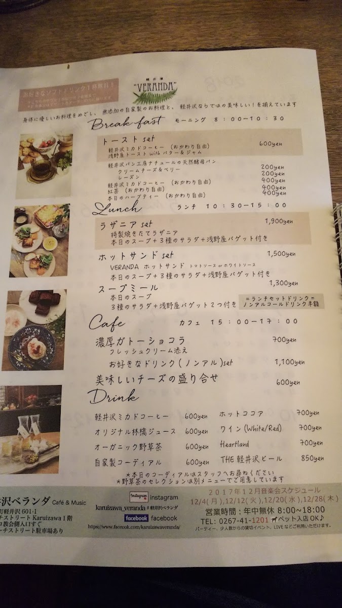Cafe de VERANDA(カフェ ベランダ) Menu